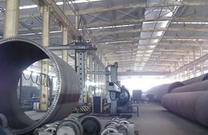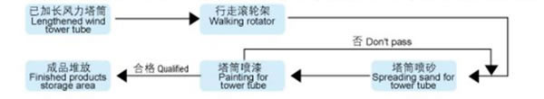 Bagian yang telah dicocokan dan bagian sambungan dari tabung menara angin sebagian besar terbuat dari welding manipulator, sistem submerged-arc welding, sistem daur ulang feeding otomatis, dan welding rotator.